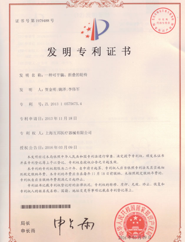 The electric wheelchair has obtained the European CE product certification and is a technology giant (cultivated) enterprise in Shanghai.
