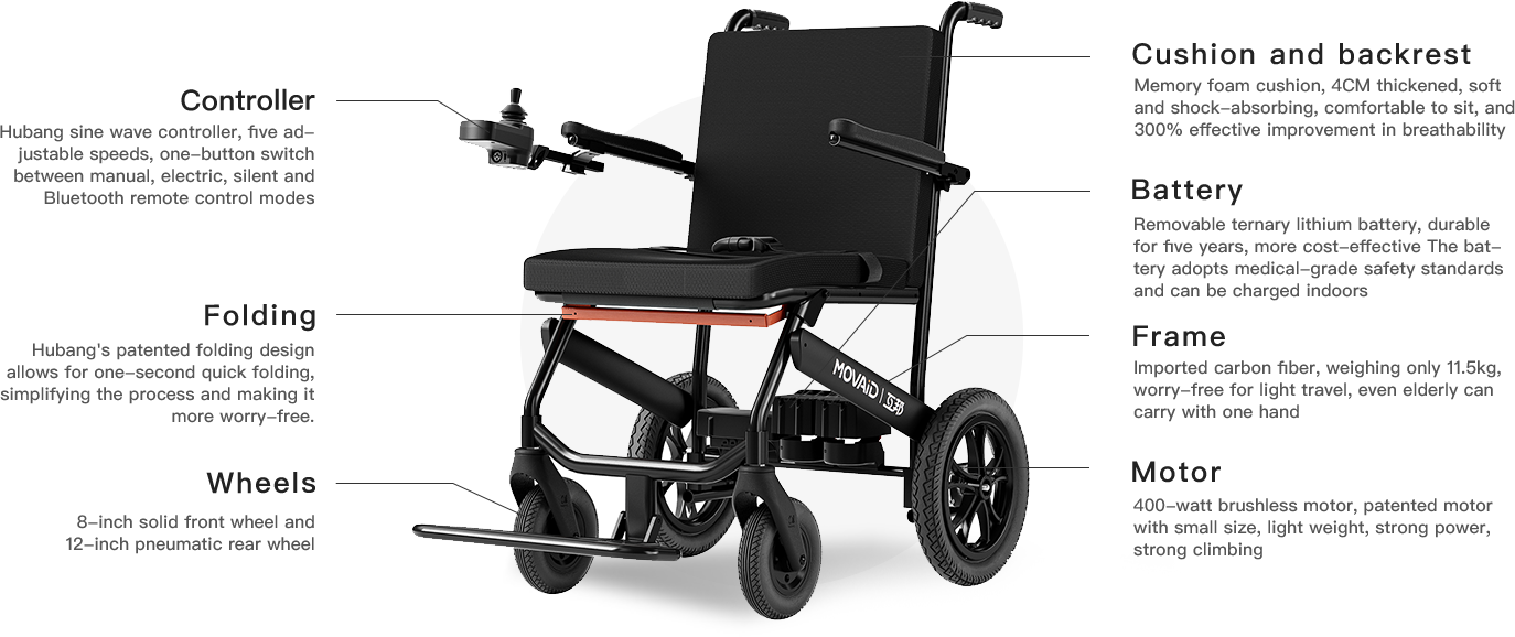 Long battery life, strong power, good on all terrain. Humanized design, easy to fold, easy to carry, worry-free travel. Intelligent control, safe and comfortable, making every trip easy and enjoyable.