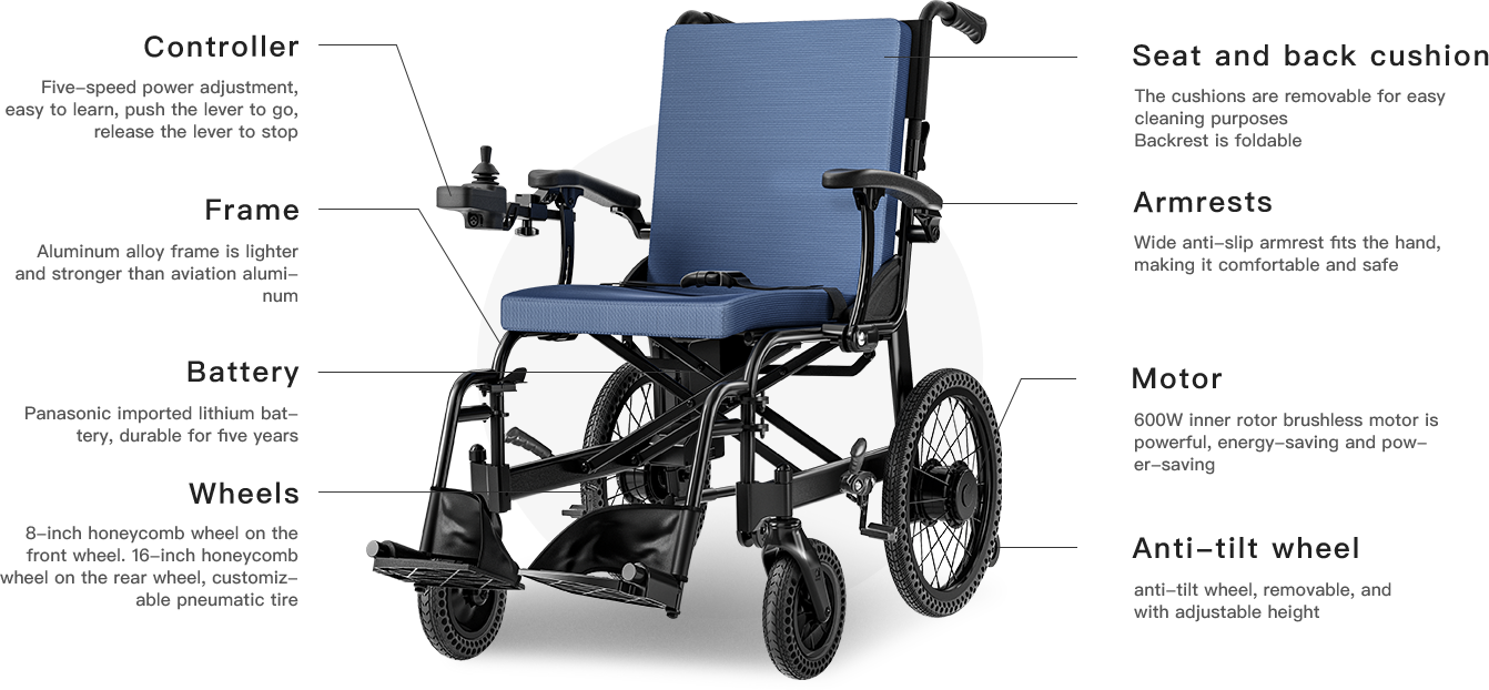 Long battery life, strong power, good on all terrain. Humanized design, easy to fold, easy to carry, worry-free travel. Intelligent control, safe and comfortable, making every trip easy and enjoyable.