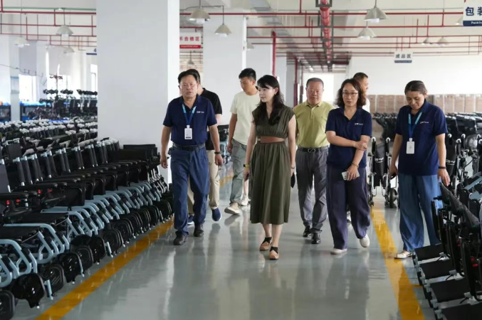 在龔志明先生的陪同下,烏當(dāng)區(qū)調(diào)研團隊一行參觀了上海互邦輪椅生產(chǎn)車間、產(chǎn)品展示中心及研發(fā)實驗室,詳細(xì)了解了互邦輪椅的生產(chǎn)工藝、技術(shù)創(chuàng)新及質(zhì)量管理體系。烏當(dāng)區(qū)政府副區(qū)長張俊妍對上?;グ钤诳祻?fù)輔具領(lǐng)域的技術(shù)積累和市場貢獻(xiàn)表示充分認(rèn)可,尤其對互邦輪椅的智能化、輕量化設(shè)計及人性化功能給予了積極評價。