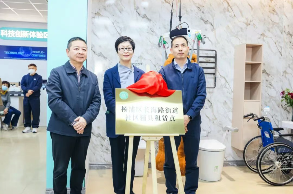 開幕式上,上海市康復器具協(xié)會會長喻洪流先生充分肯定體驗館的創(chuàng)新價值與發(fā)展前景。隨后,上海市民政局、楊浦區(qū)民政局及長海路街道領導共同為體驗館授予“輔具社區(qū)租賃點”認證牌匾,標志著其正式成為社區(qū)康復服務網(wǎng)絡的關鍵一環(huán),搭建起通往居民家庭的“暖心橋梁”。